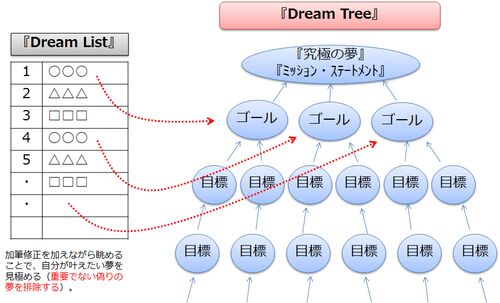 今日は、『Dream Tree』と『人生ピラミッド』についてです~。 前回のまとめは読んでもらえたでしょうか? 『手帳術』ここまでのまとめ - アカルイミライ ちょっと分かりにくかったかもしれないので、図解したのが以下の図です。 『Dream Tree』 ポイントは…
